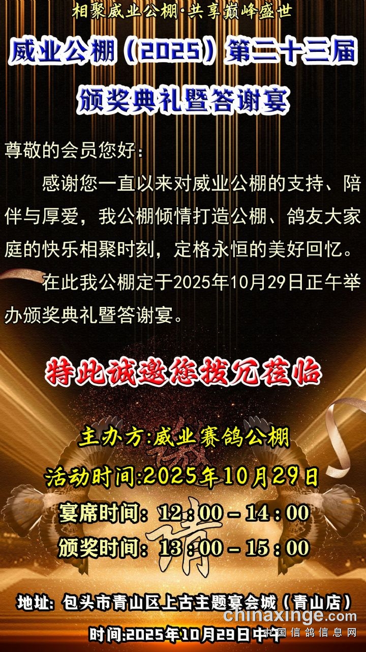 威业公棚(2025)颁奖典礼暨答谢宴通知