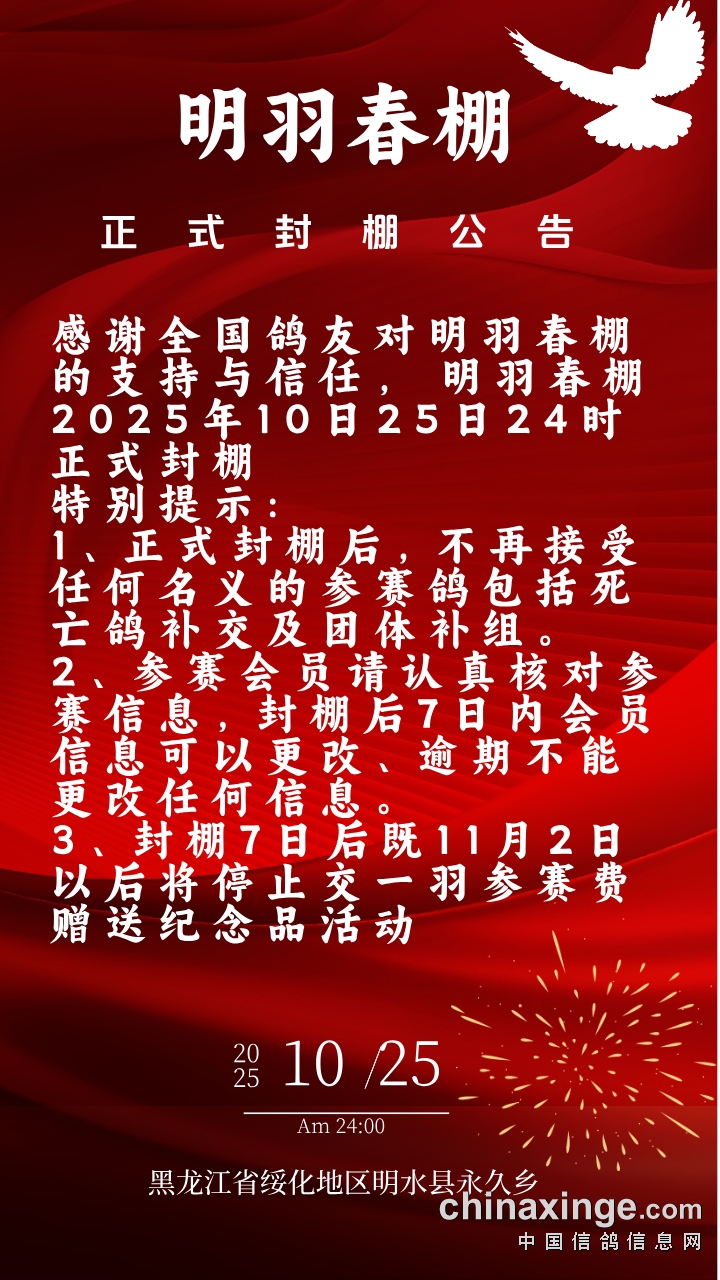 黑龙江明羽春棚2026年幼鸽入棚名单(请鸽友核对信息)