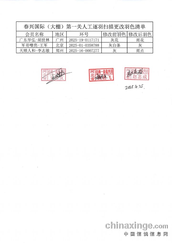 春兴国际(大棚)第一关更改羽色清单