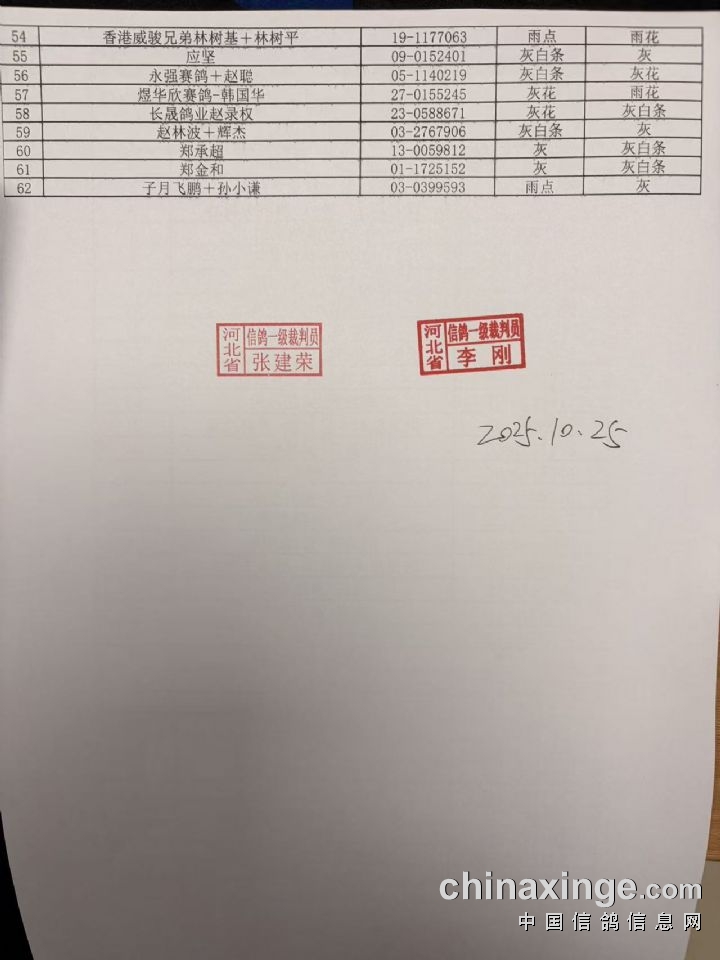 开尔爱心公棚(青年队)资格赛三日归巢清单(按成绩)