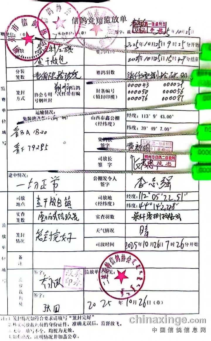 2025年第四届山西泰鑫赛鸽公棚第三关决赛司放图集