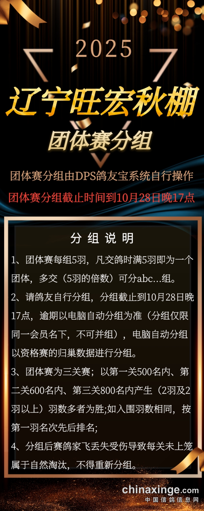 辽宁旺宏秋棚:团体赛分组通知
