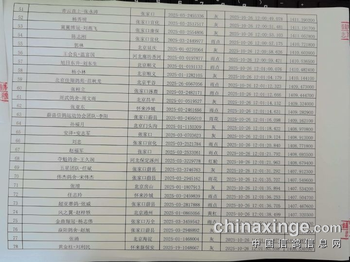 河北宏建赛鸽公棚加站赛“山城文体杯赛”未上笼名单