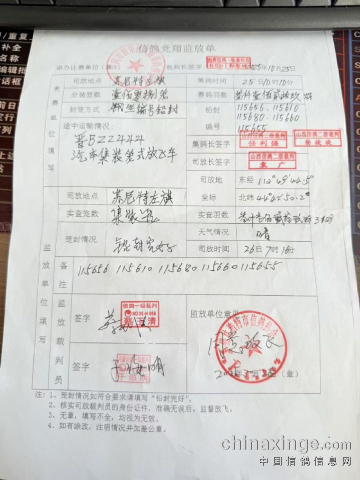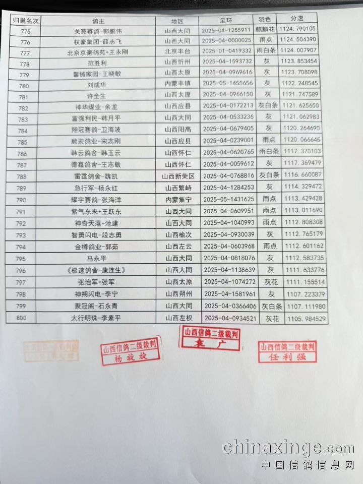 山西文盛赛鸽公棚决赛前800名经裁判审核成绩真实有效