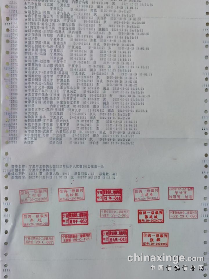 • 宁夏中卫赛鸽公棚精英赛获奖名单 (2025-11-20 16:34:51)