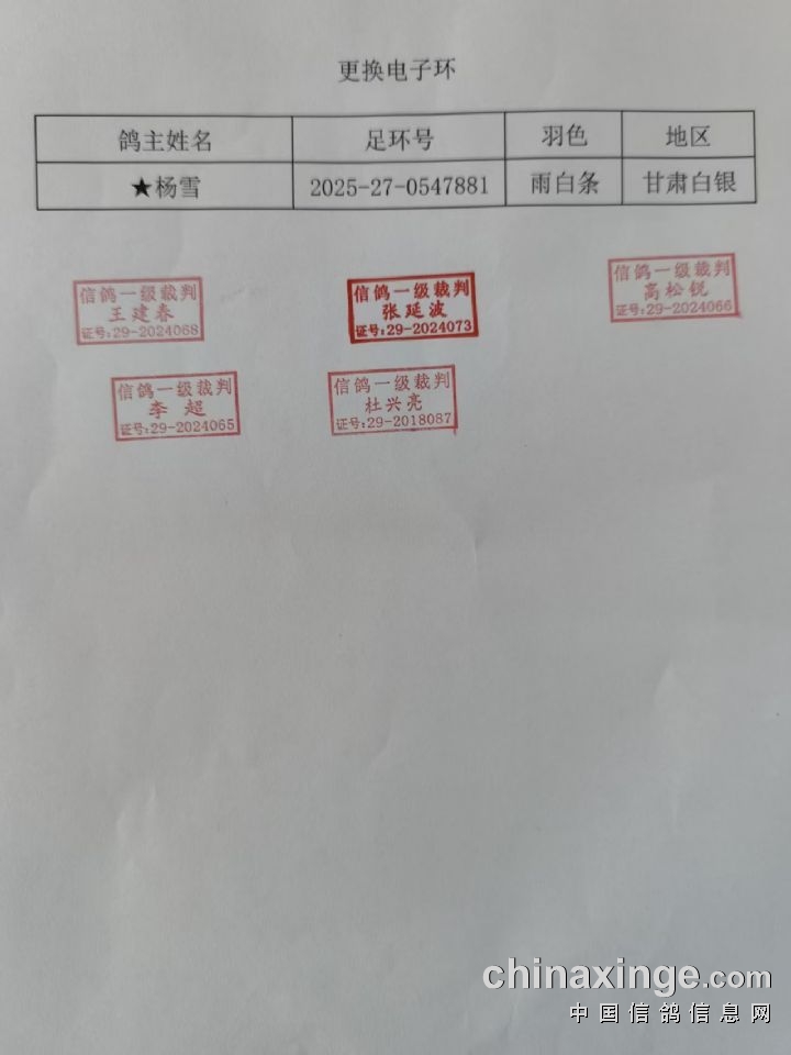 宁夏中卫赛鸽公棚300公里第一关更换电子环名单
