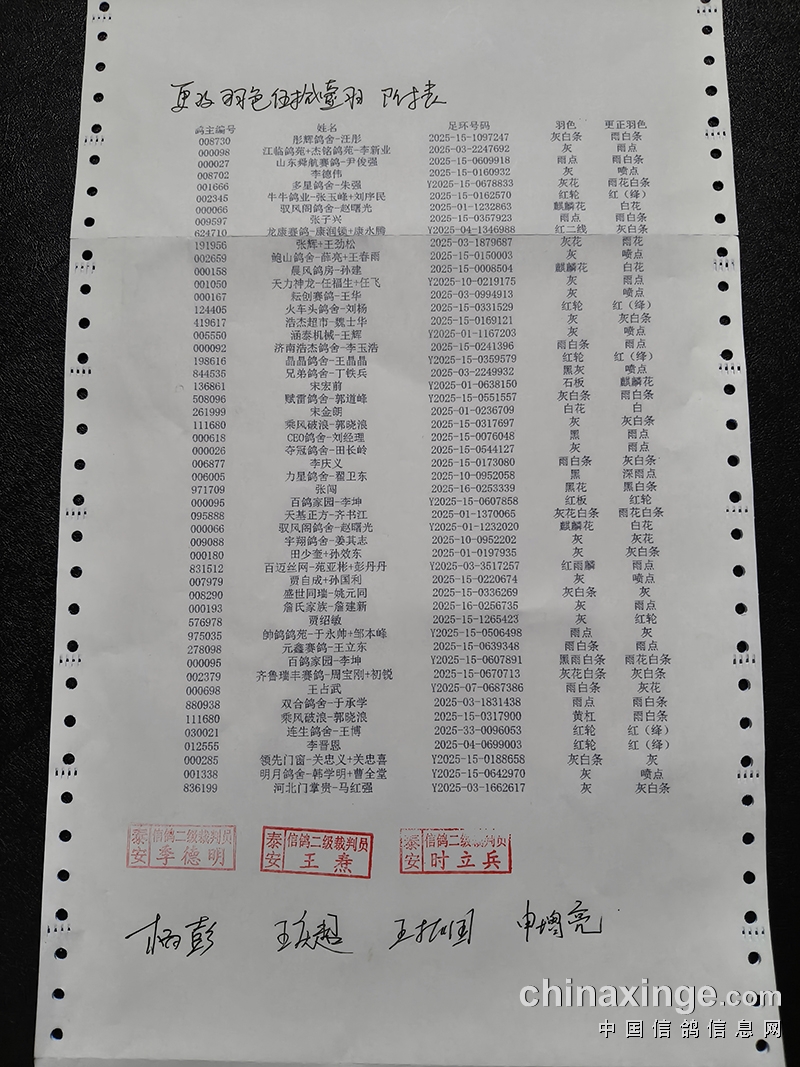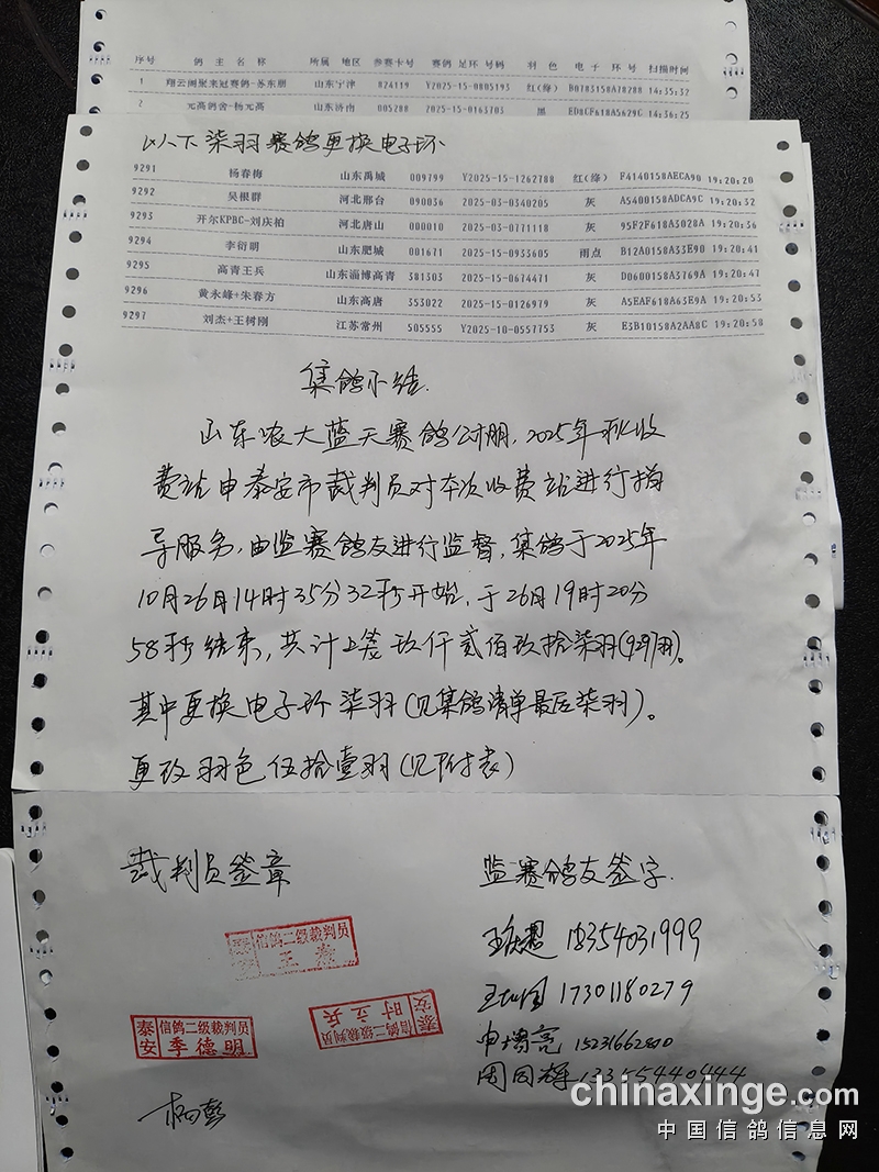 农大蓝天赛鸽公棚收费站集鸽清单(按顺序)