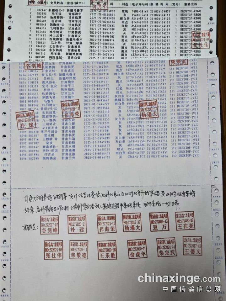 甘肃天翎赛鸽公棚191公里热身赛三日扫描数据