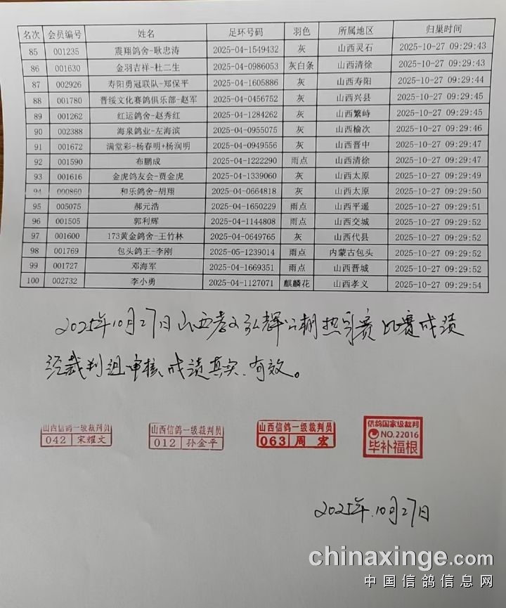 • 孝义弘辉:双关鸽王及三关鸽王获奖明细(两日内无异议,自动生效) (2025-11-18 17:09:55)