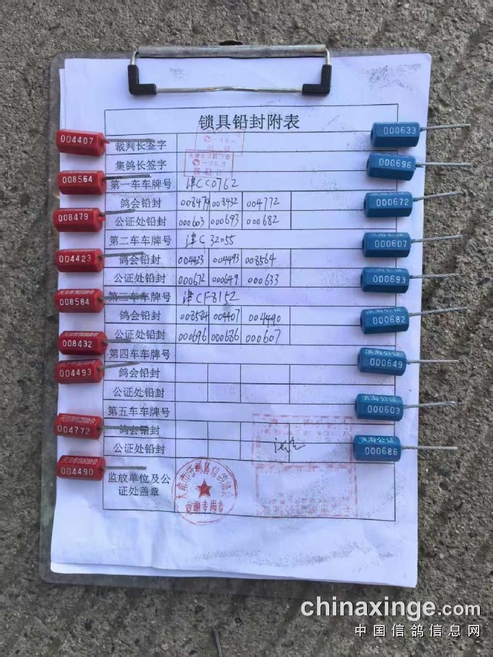 天津万联赛鸽公棚100公里收费站更换电子环名单
