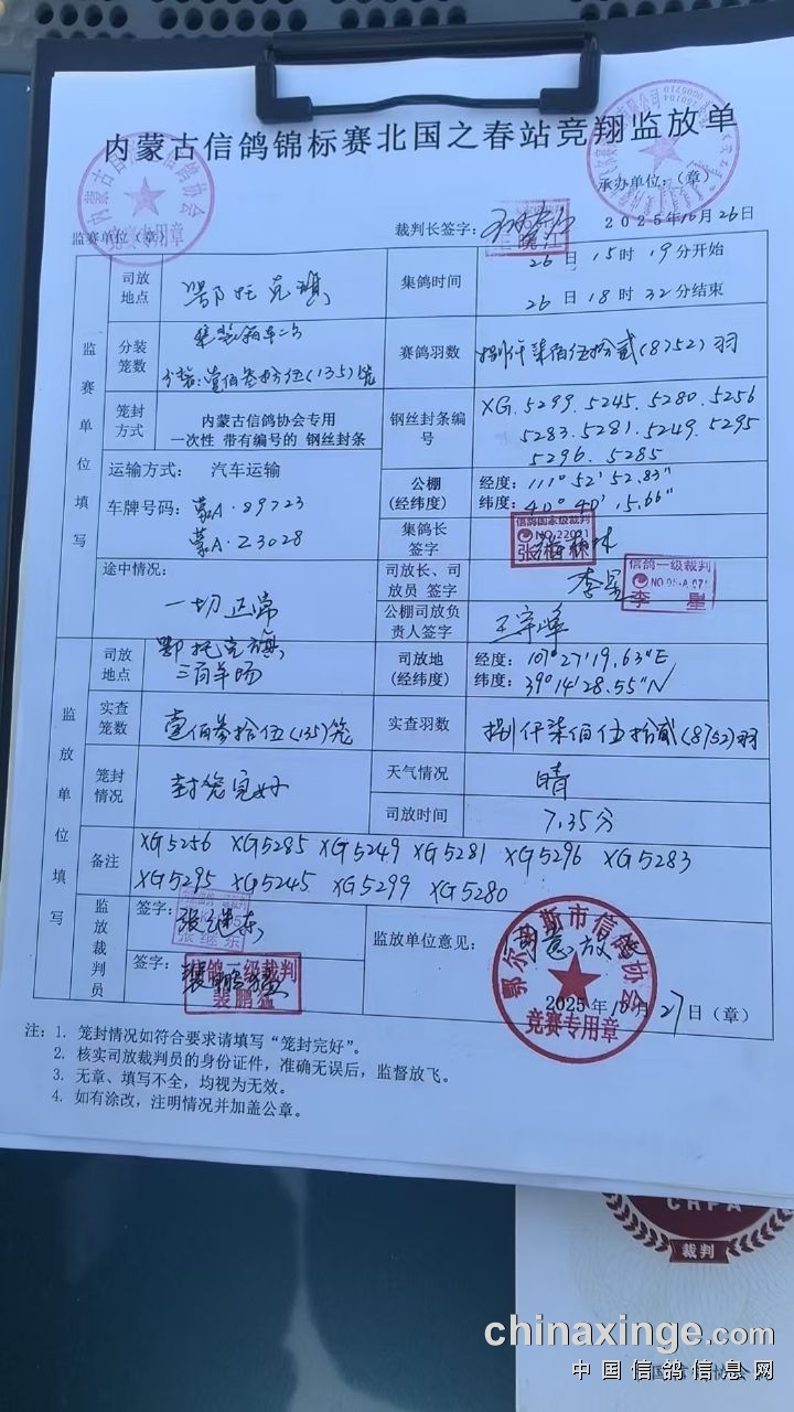 内蒙古信鸽锦标赛“鸽王排名赛”北国之春站第三关预赛于2025年10月27日7:35在内蒙古鄂尔多斯市鄂托克旗开笼放飞。司放地天气晴朗,鸽群走势良好,预祝参赛鸽友取得优异成绩。