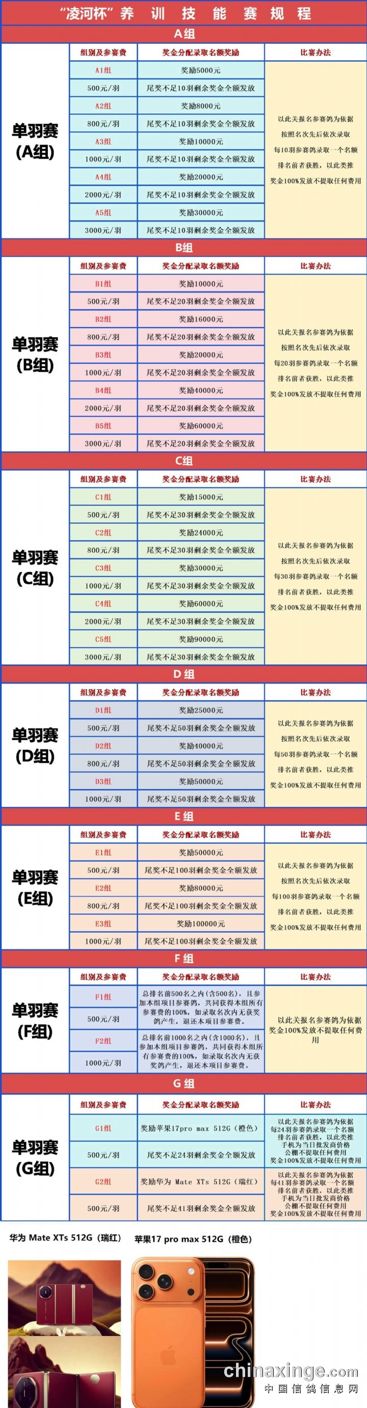 (养训技能赛奖金百分百发放,公棚不提取任何费用)
