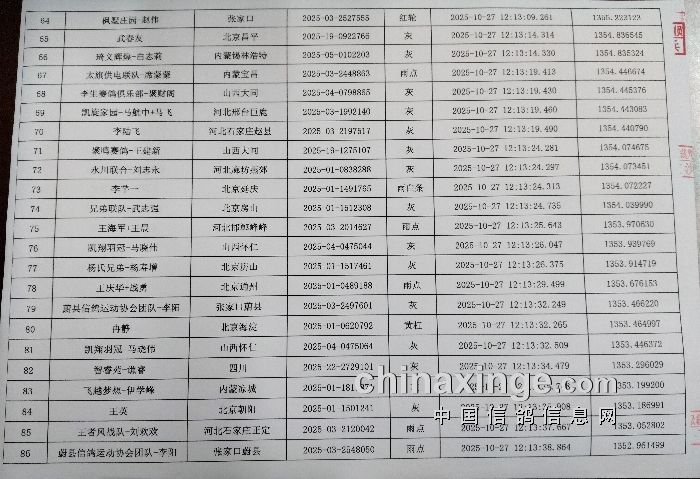 张家口晓辉爱心公棚500公里决赛小团体、大团体获奖名单