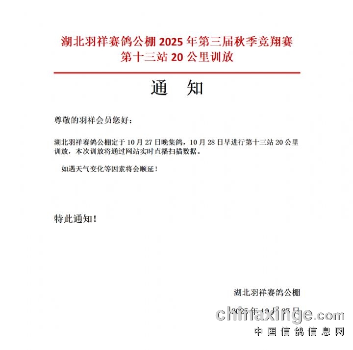湖北羽祥公棚第十五站训放扫描(不排除漏扫)