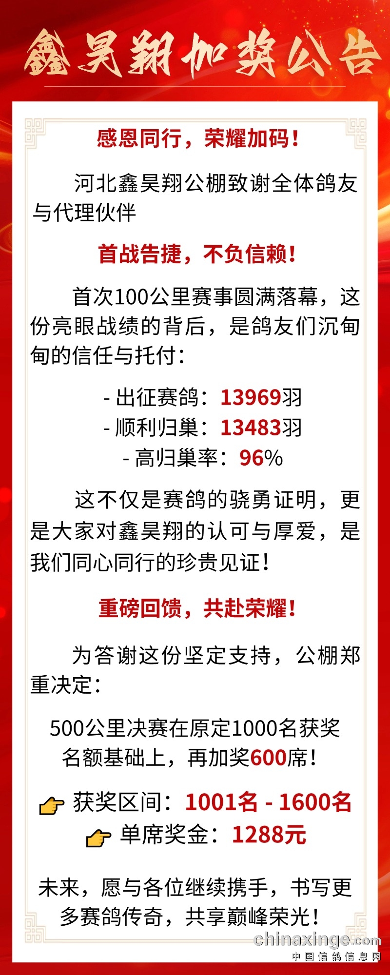 河北鑫昊翔公棚100公里收费站开笼公告及直播链接