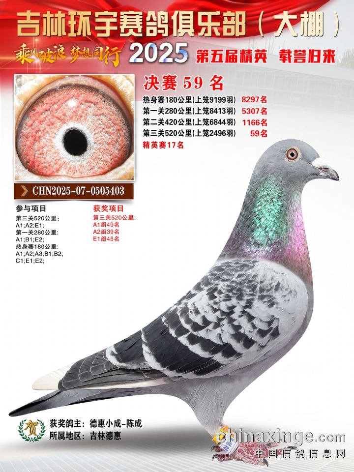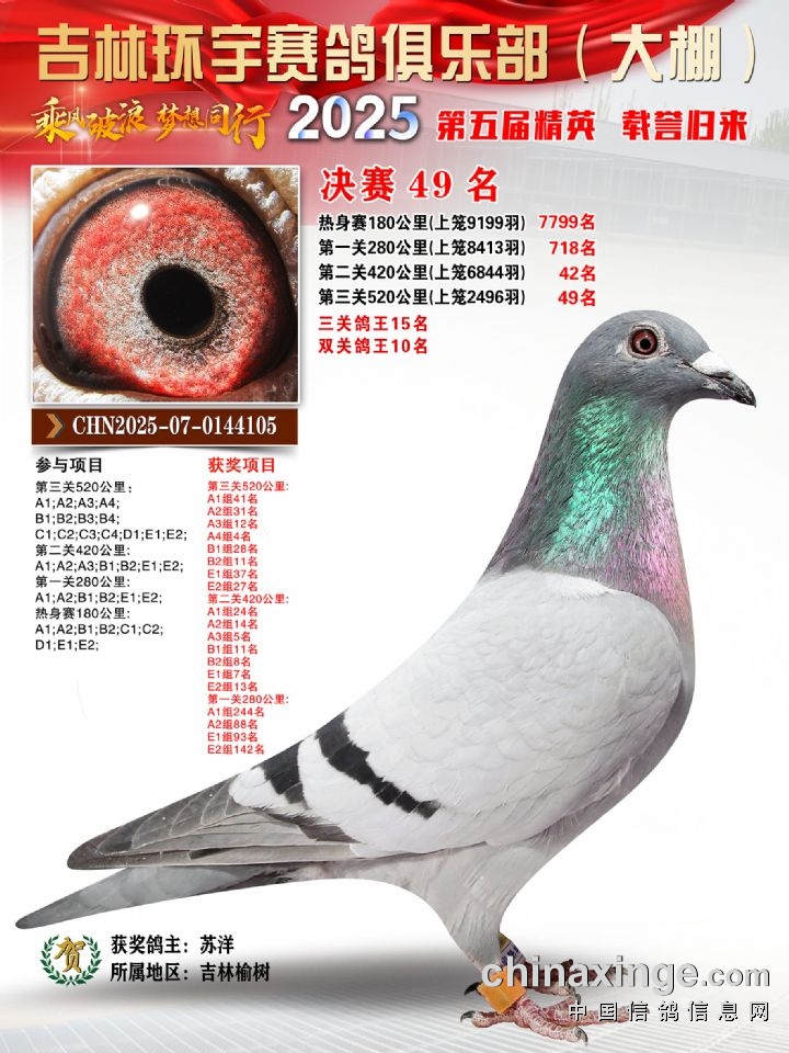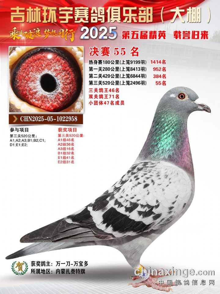 环宇(大)2025年三关鸽王前100名DNA数据分析报告
