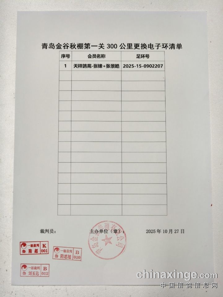 青岛金谷秋棚 第八届秋赛第二关比赛集鸽清单(按顺序)