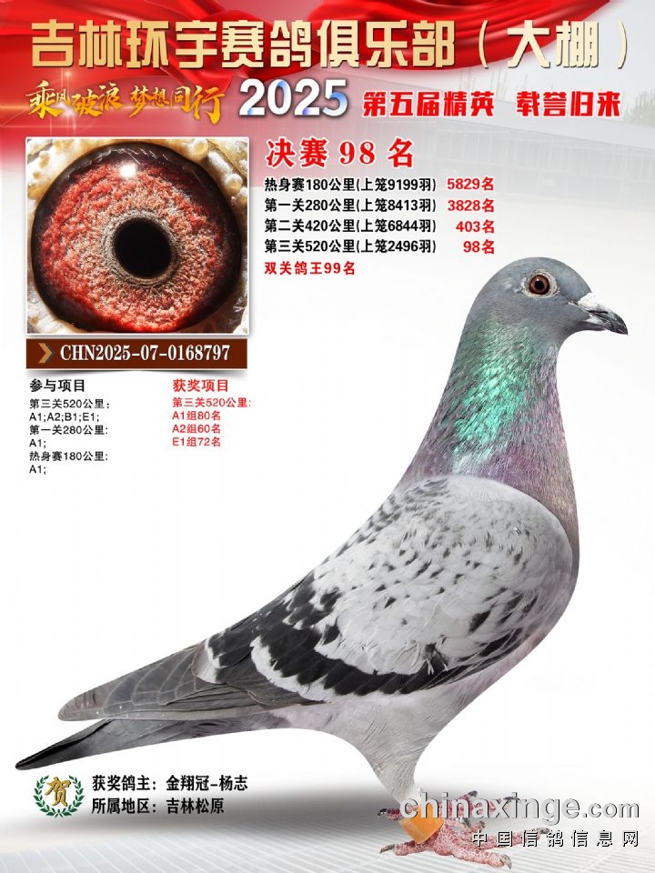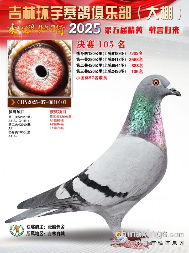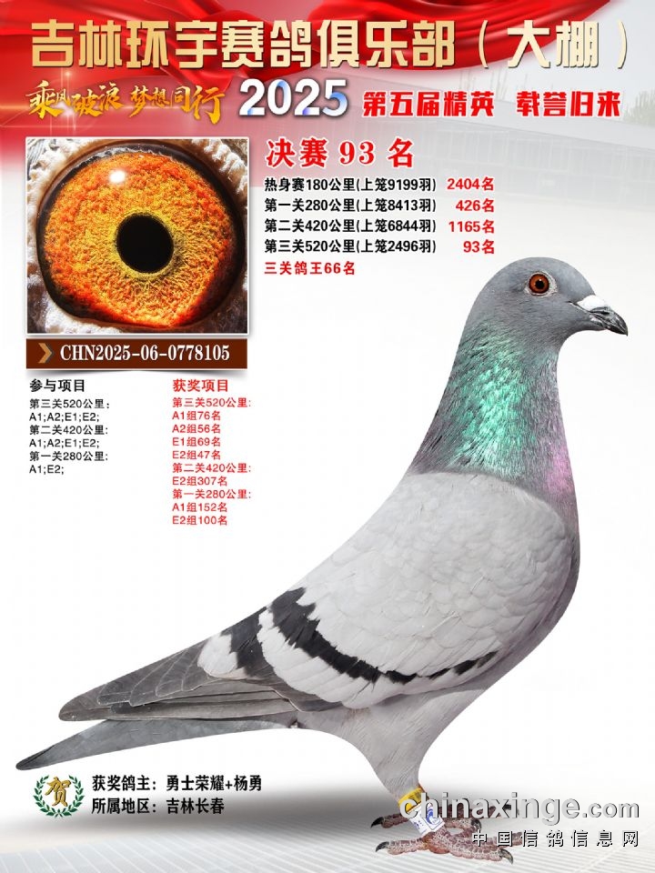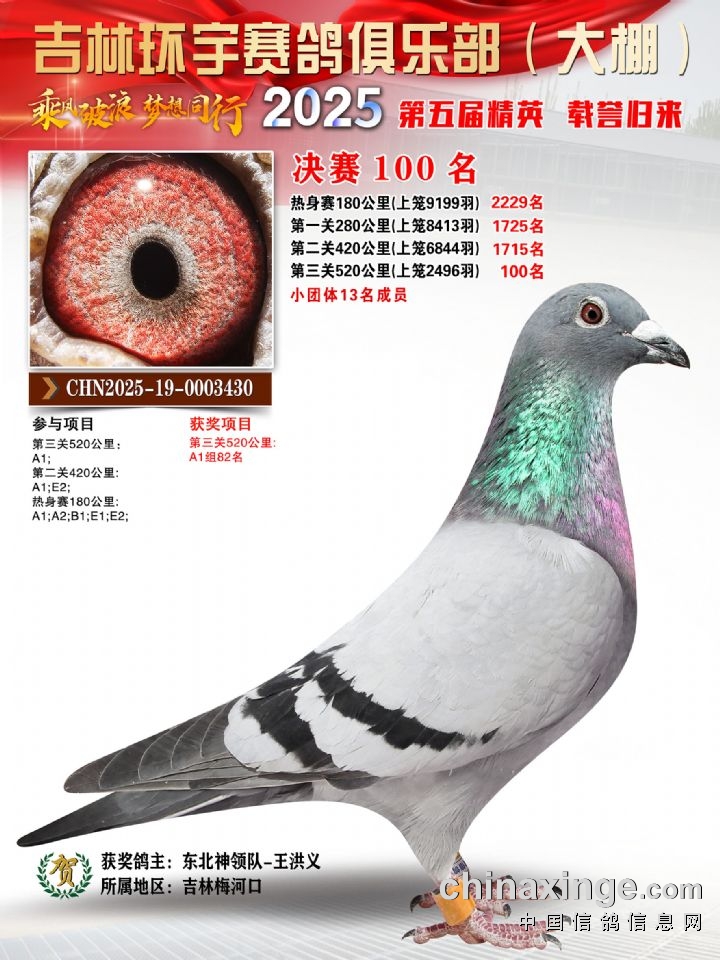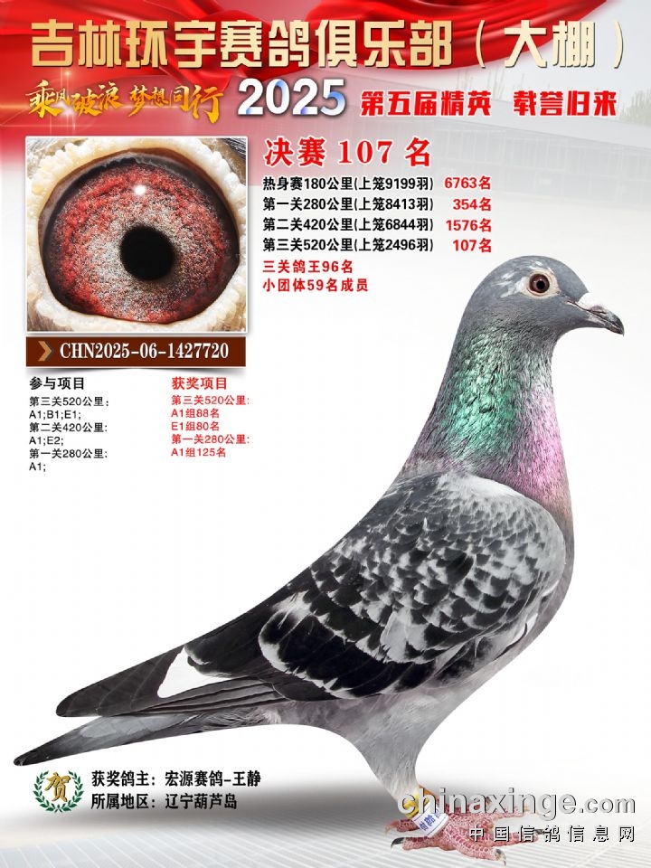 环宇(大)2025年三关鸽王前100名DNA数据分析报告