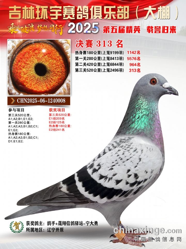 环宇(大)2025年三关鸽王前100名DNA数据分析报告