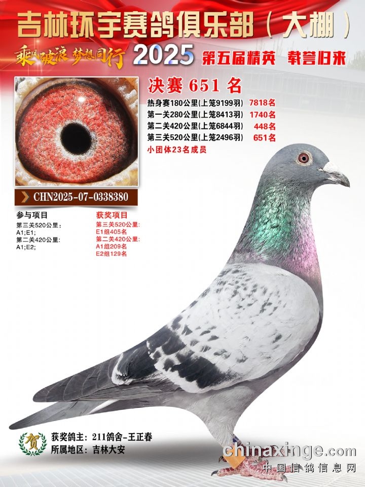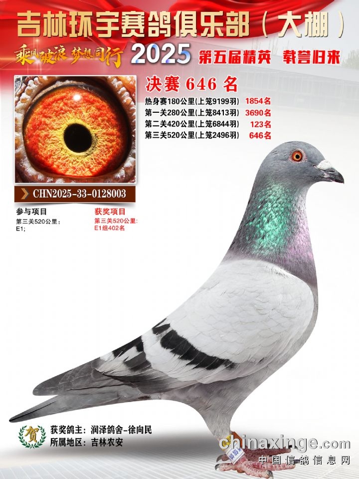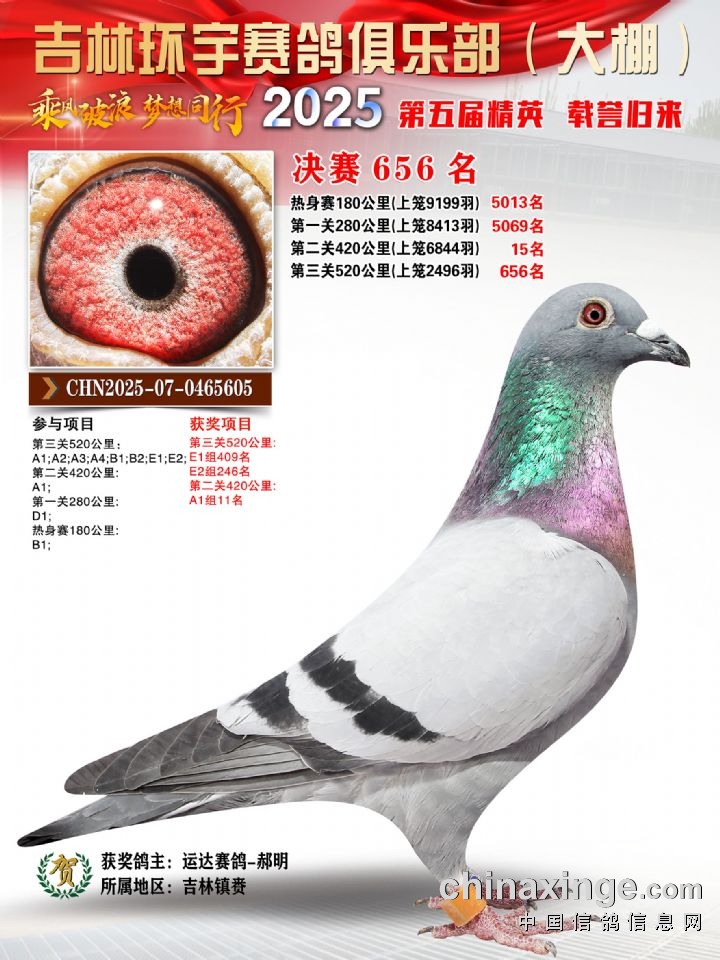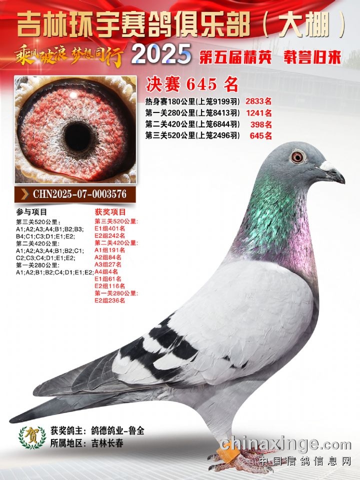 环宇(大)2025年三关鸽王前100名DNA数据分析报告