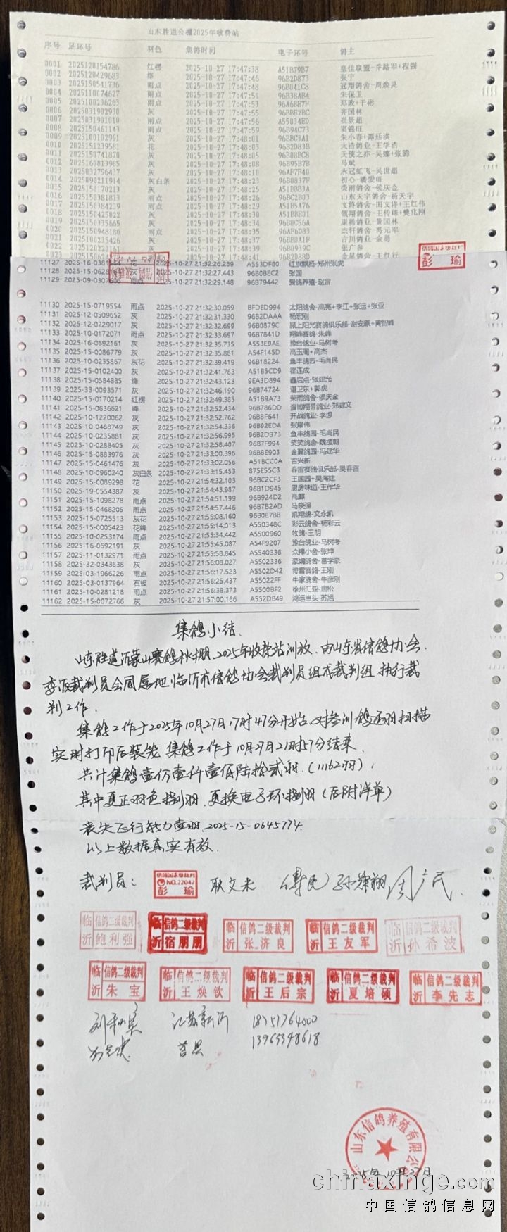 山东胜道公棚2025年收费站集鸽数据(按顺序)