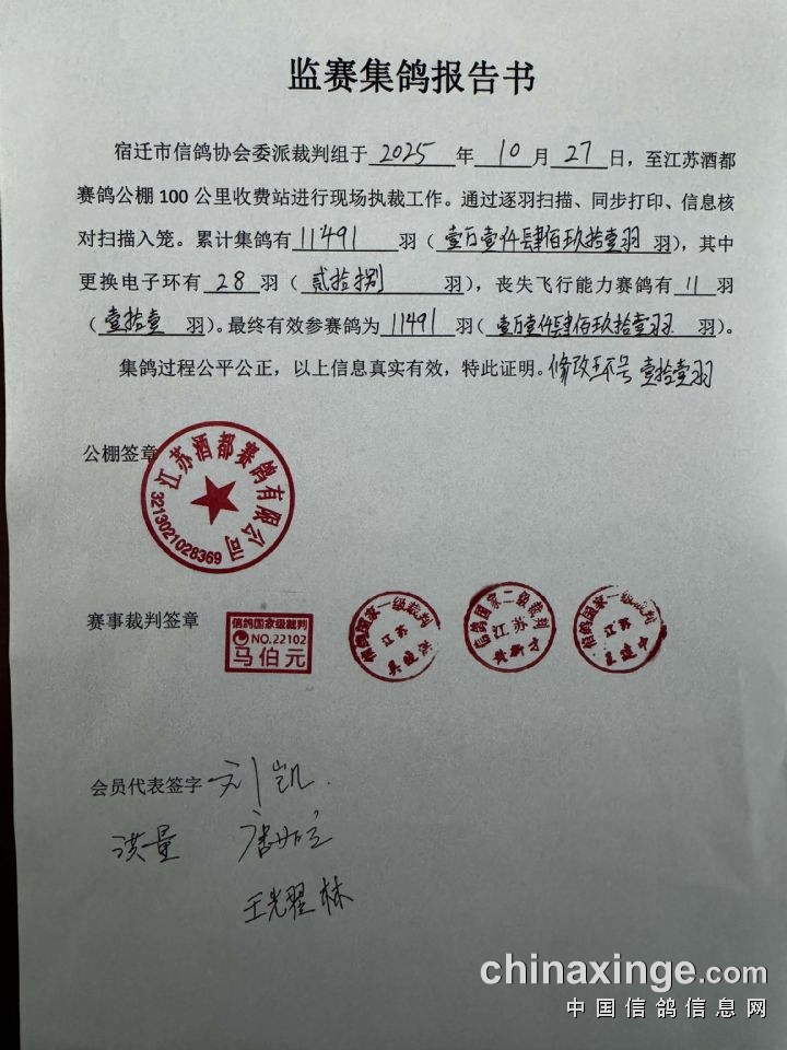 江苏酒都赛鸽公棚100公里3日归巢数据