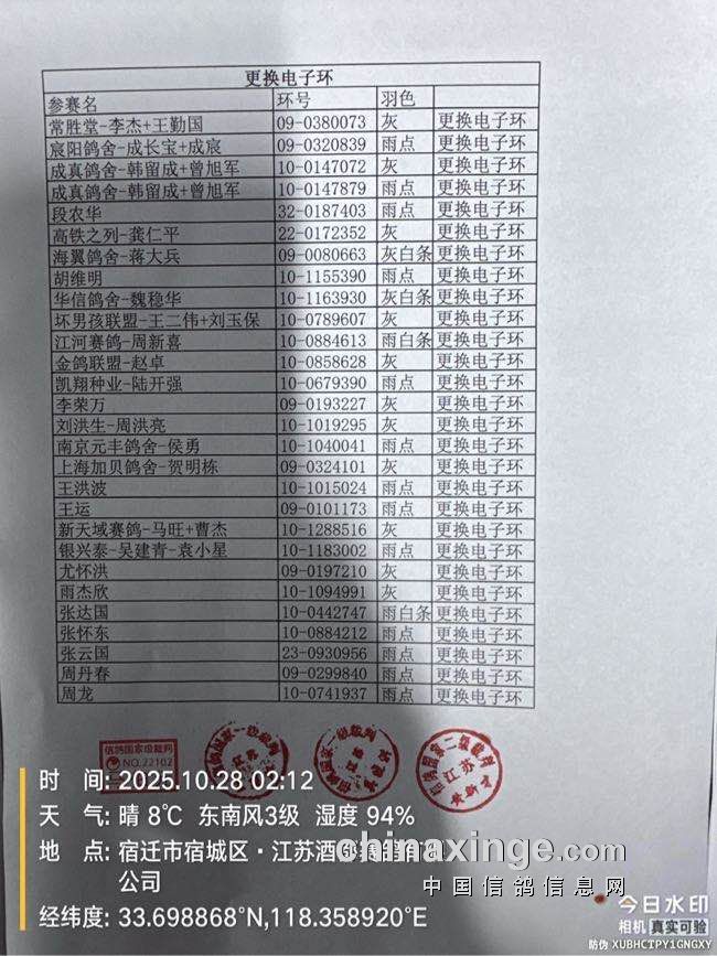 江苏酒都赛鸽公棚100公里3日归巢数据
