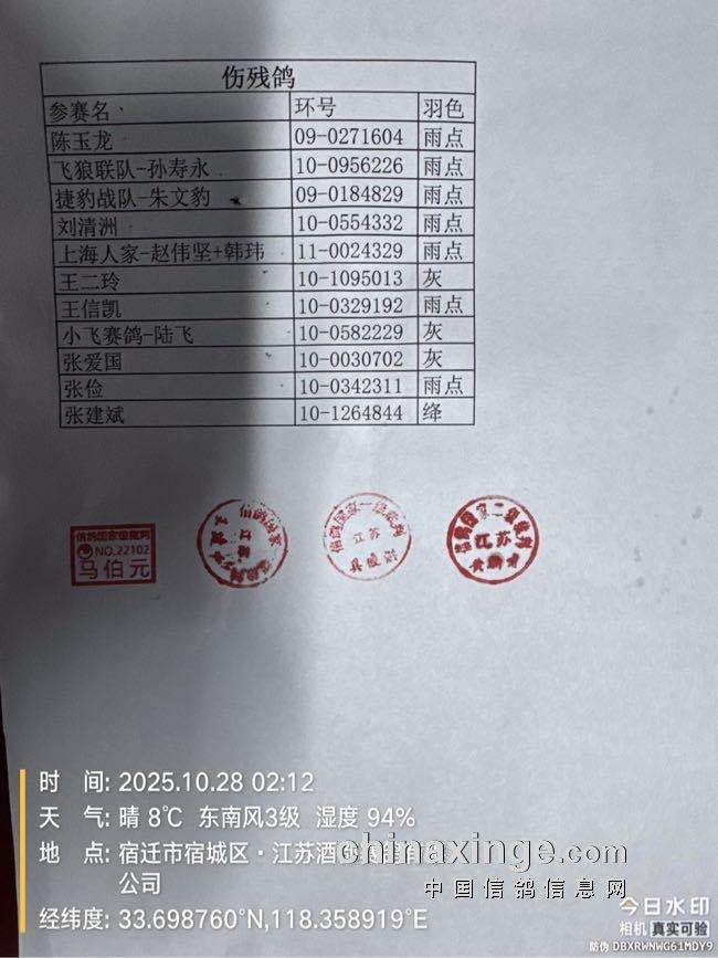 江苏酒都赛鸽公棚100公里3日归巢数据