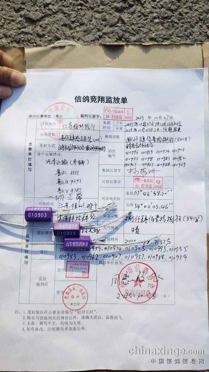 司放地裁判员及监赛鸽友: