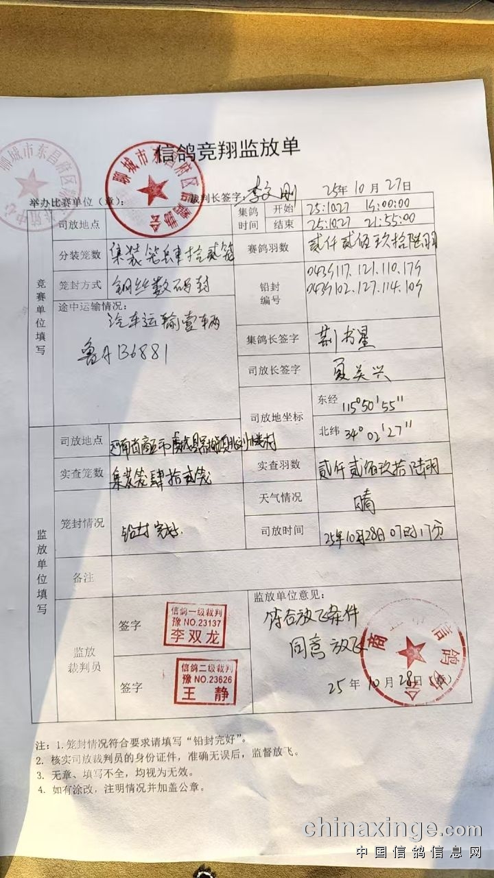 山东翔磊公棚260公里第一关上笼清单按会员排序(两台电脑同时集鸽时间存在重复属于正常)