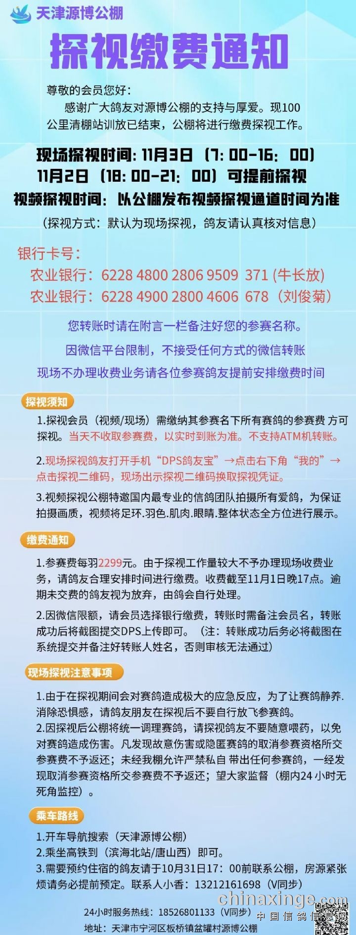 · 现场不办理收费业务请各位参赛鸽友提前好安排缴费时间