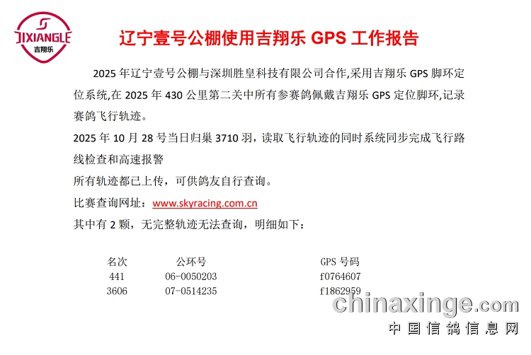辽宁壹号公棚430公里使用吉翔乐GPS工作报告及飞行轨迹
