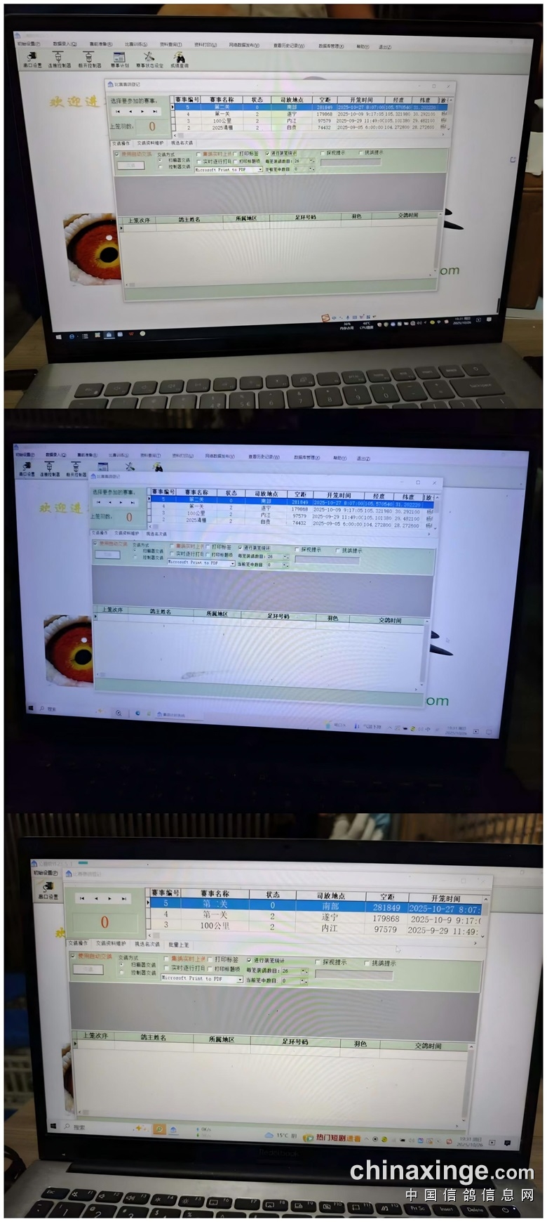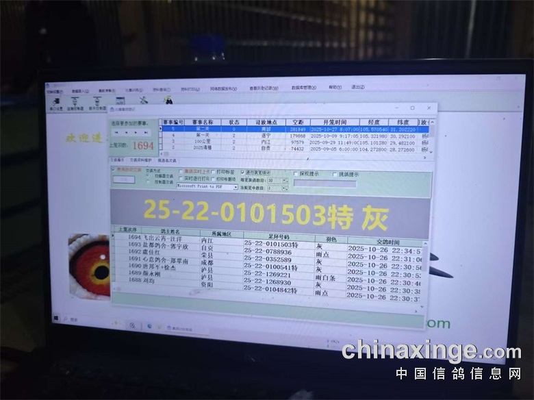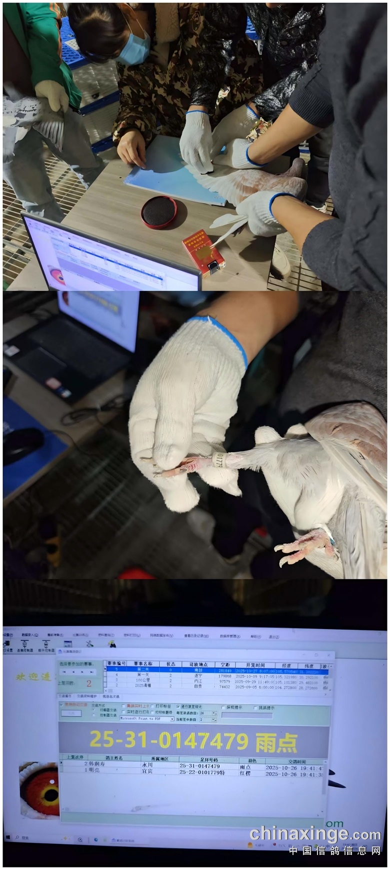 ▼集鸽前电脑数据清零,随后开启扫描工作,集鸽工作有序进行,直至最后一羽赛鸽上笼。