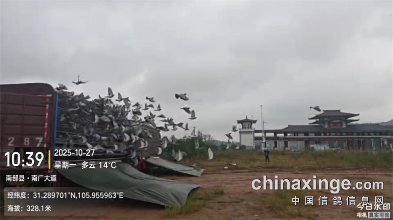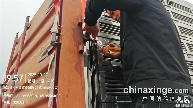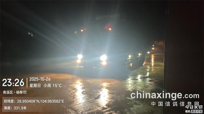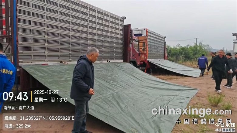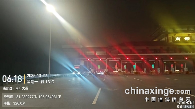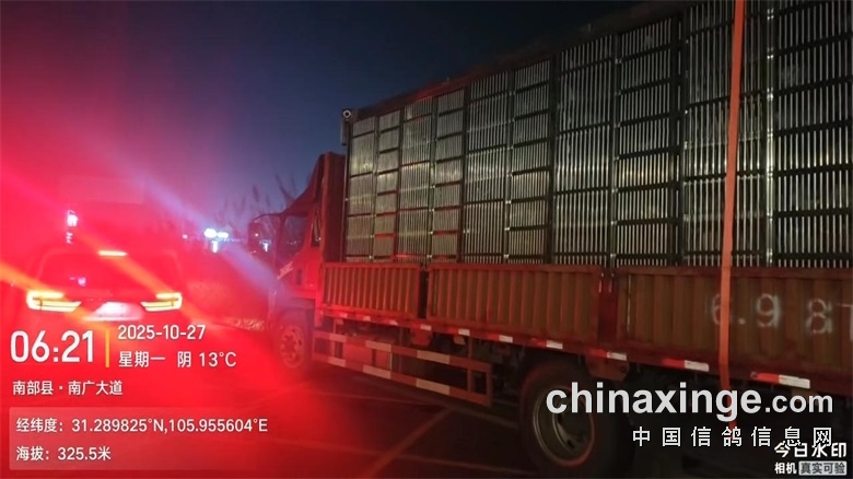 ▼集鸽完毕后,三辆集鸽车于2025年10月26日晚上23:26分从公棚出发前往司放地。
