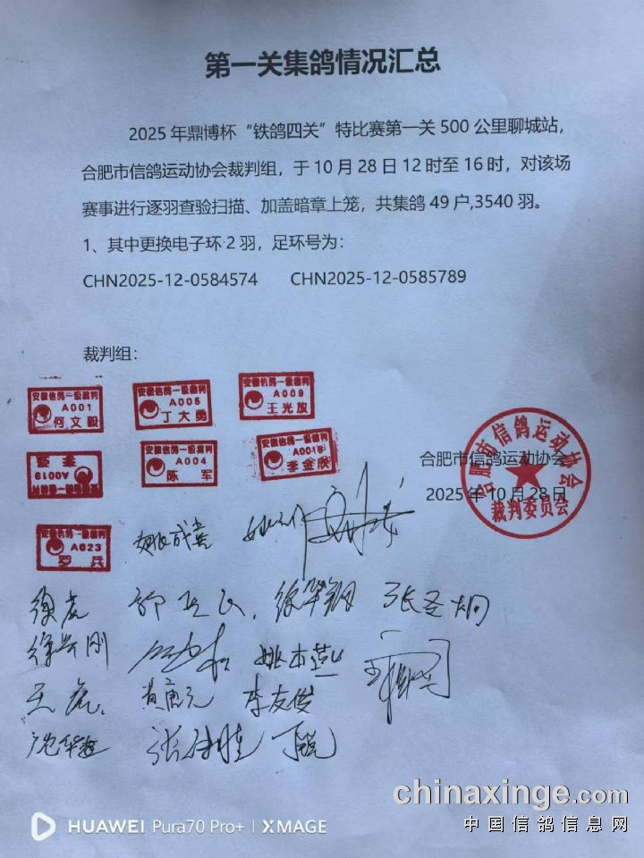 2025年鼎博杯"铁鸽四关"特比赛第一关500公里(聊城站)开笼公告
