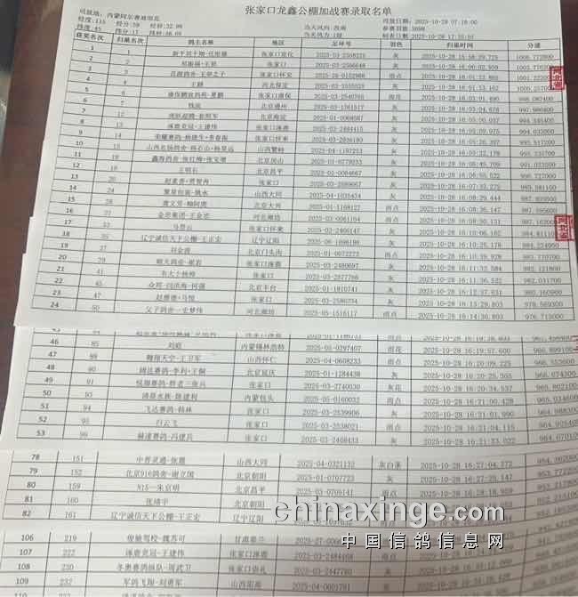 张家口龙鑫公棚加战赛数据直播链接及开笼图片