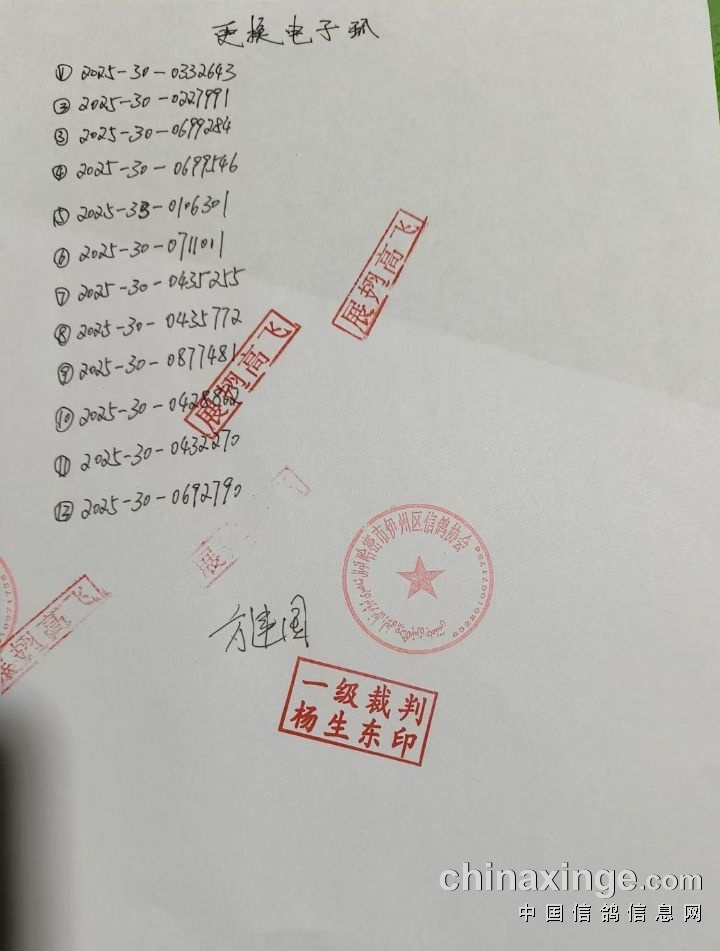 新疆哈密鸽影天下赛鸽俱乐部2025年(100公里收费站)资格赛更改羽色的名单
