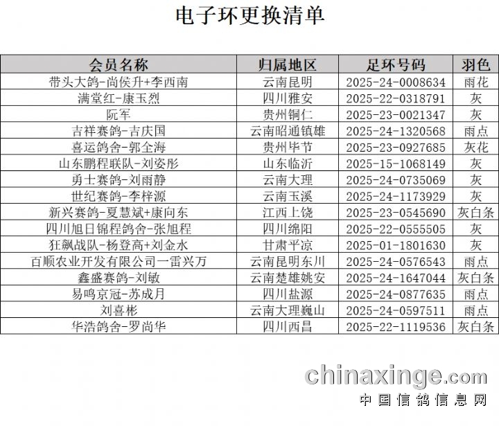 2025年天南铜都(大秋棚)第一关(200~230公里)逐羽扫描上笼清单