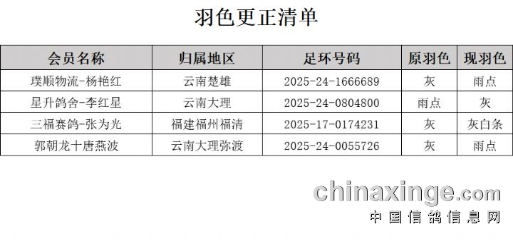 2025年天南铜都(大秋棚)第一关(200~230公里)逐羽扫描上笼清单