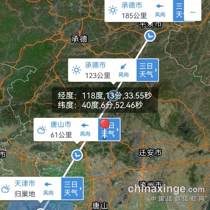 结束180公里资格赛放飞地示意图(仅供鸽友参考)