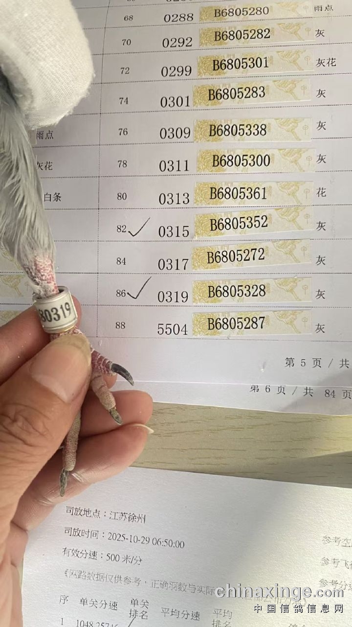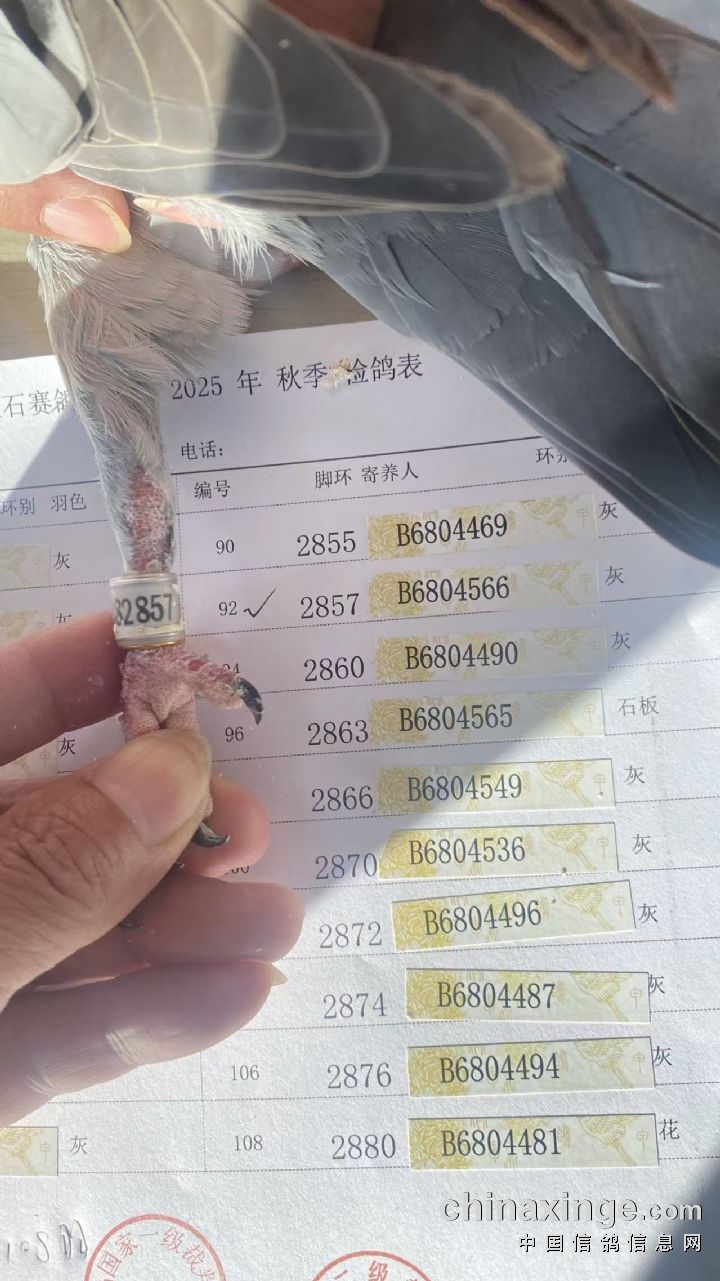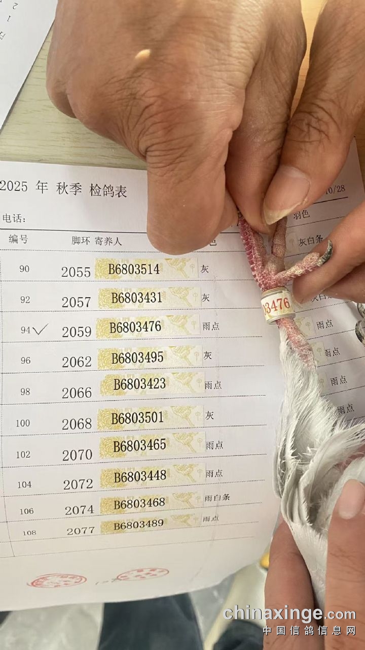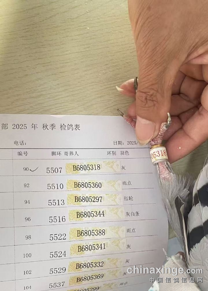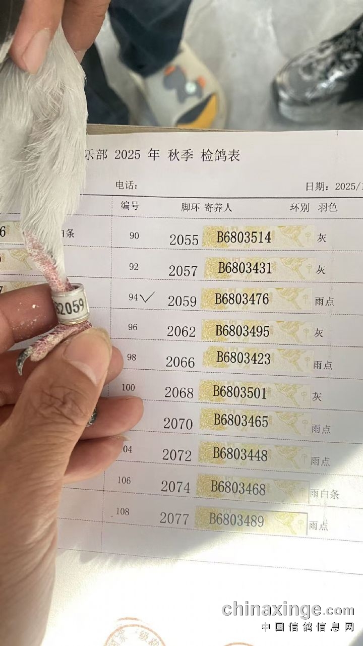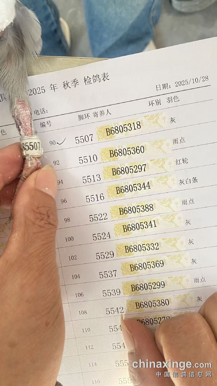 寄养人 天江鸽业☆商卫江 足环号 5507