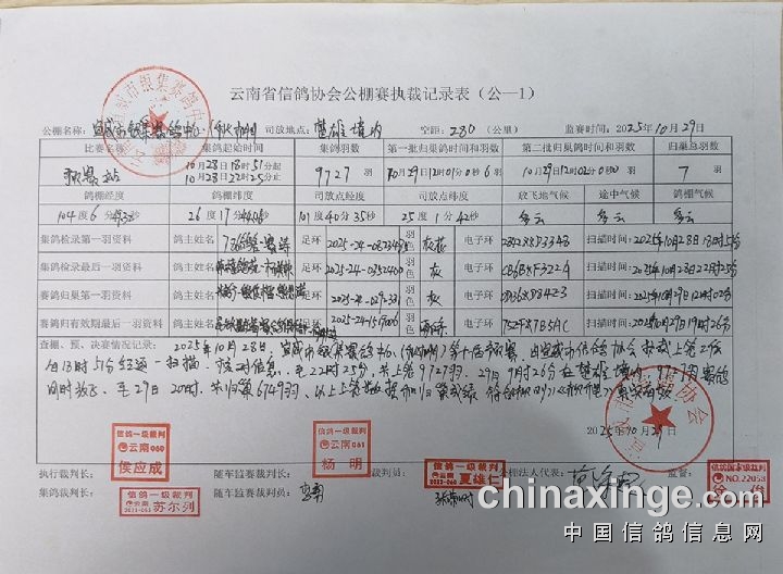 2025年11月2日银集赛鸽中心秋棚家飞扫描成绩汇总