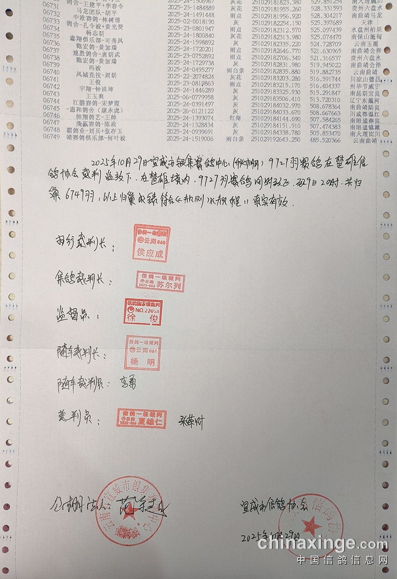 2025年银集赛鸽中心秋棚340公里半决赛逐羽扫描上笼清单