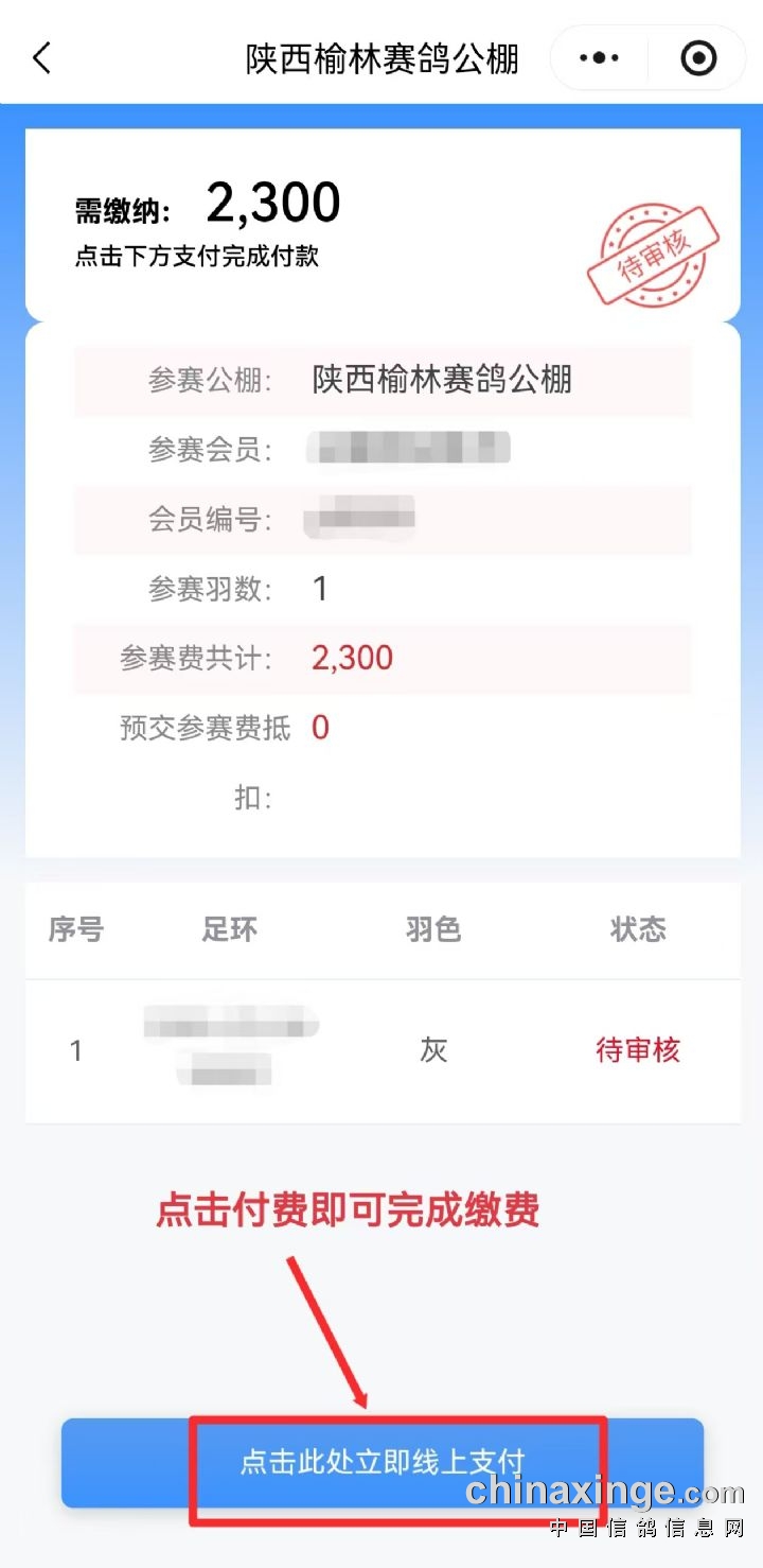 温馨提示:为了保证您的爱鸽正常参加比赛,请您按规定时间缴纳参赛费!汇款时请备注参赛名及羽数,以便我公棚财务人员核对参赛信息。汇款后请您及时将汇款单发至公棚财务微信并保留微信记录。