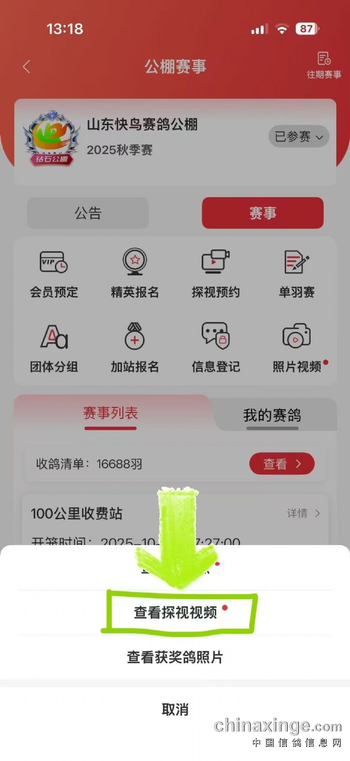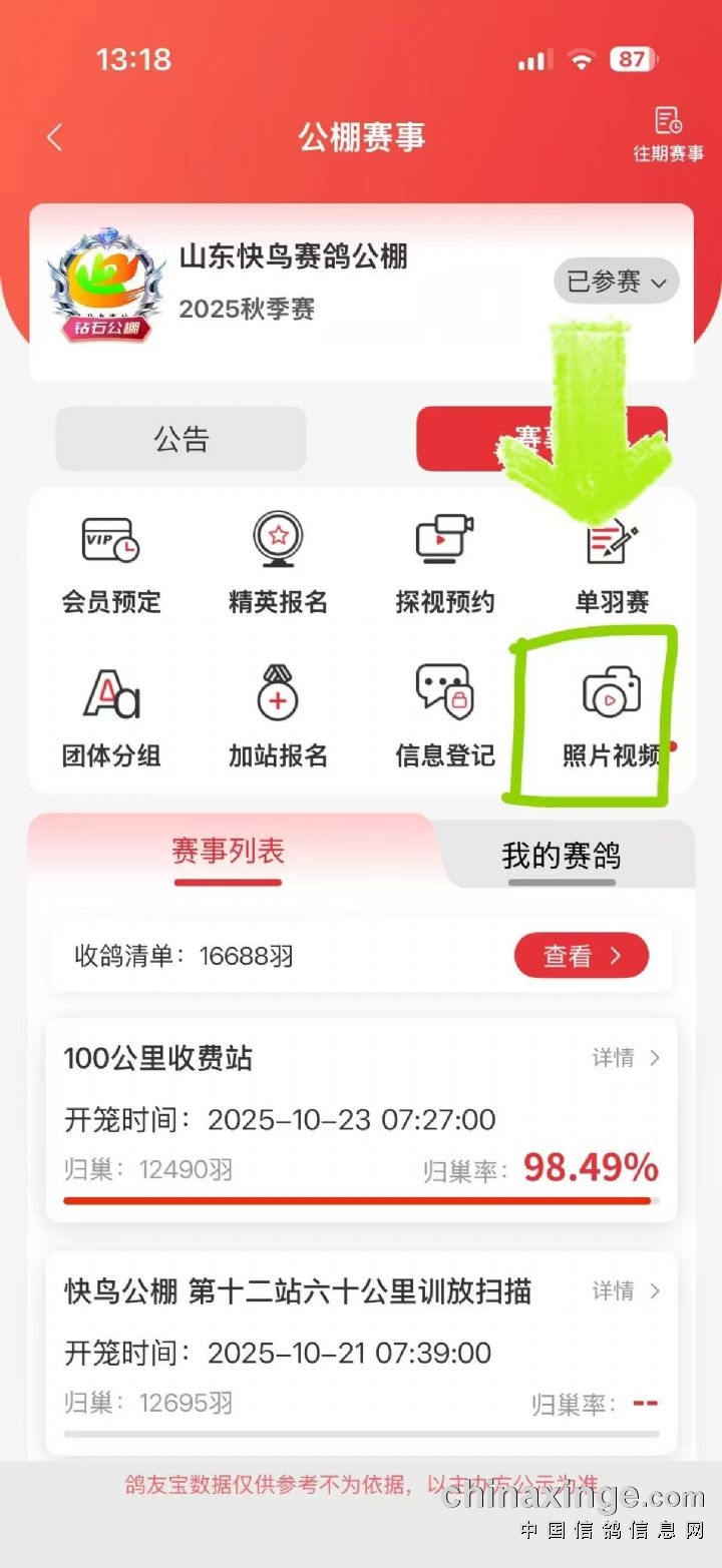 视频更新中,请会员仔细核对赛鸽信息,如有错误请及时联系公棚修改