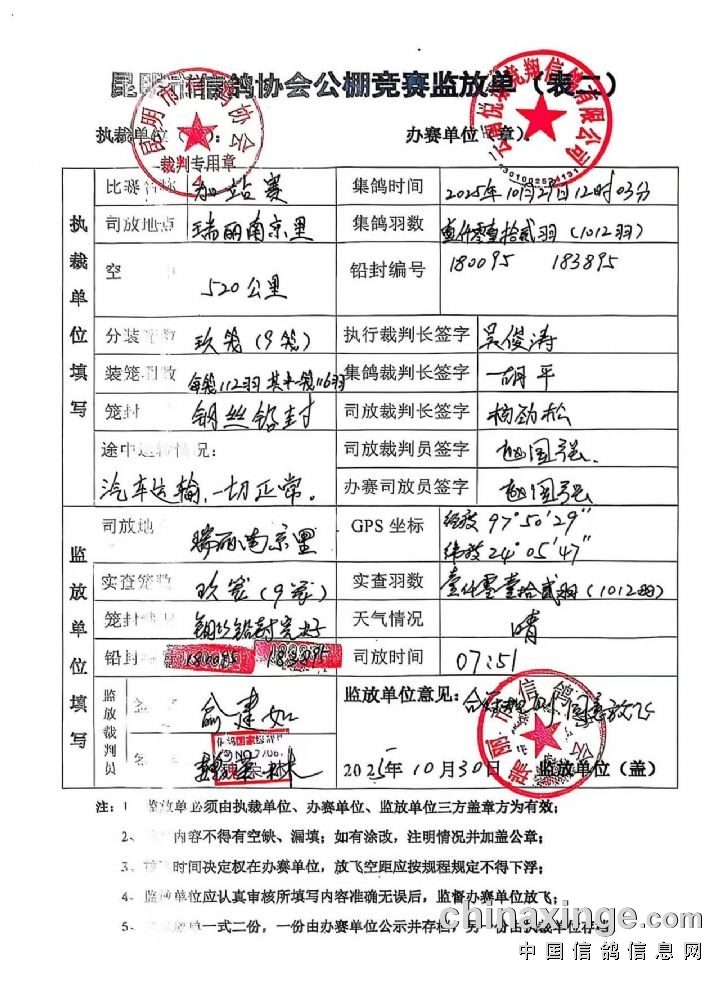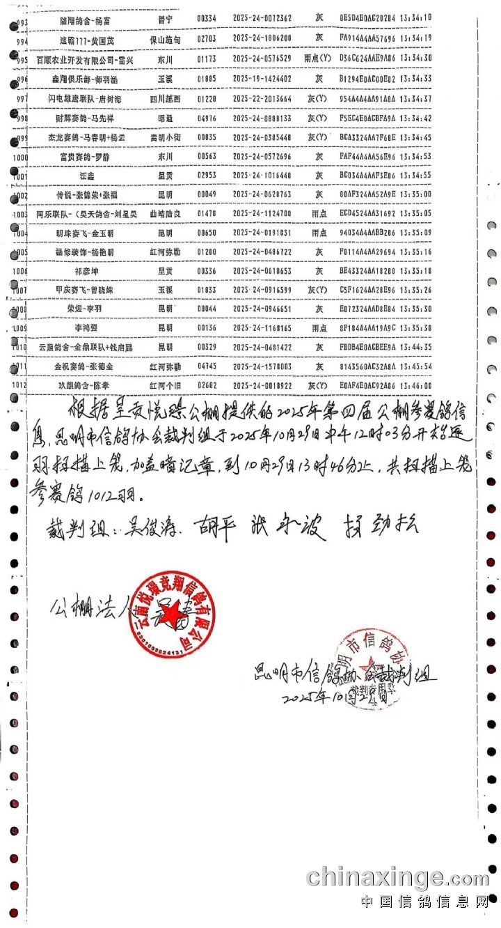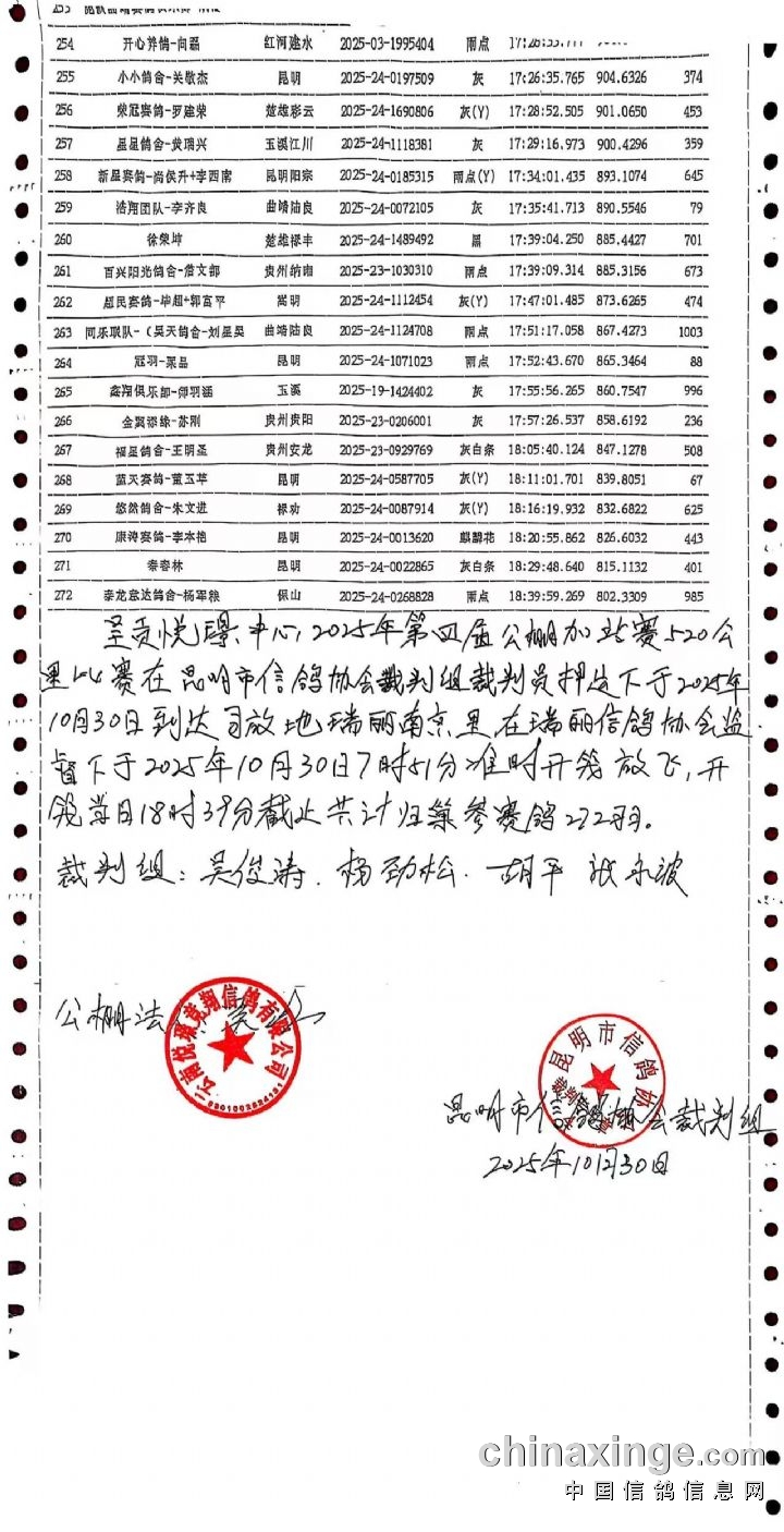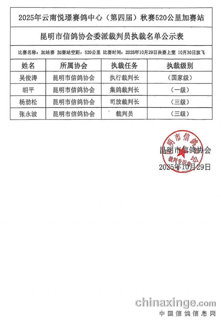 2025年昆明悦璟赛鸽中心加站赛执裁文件公示