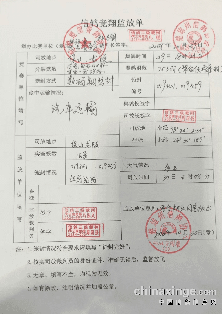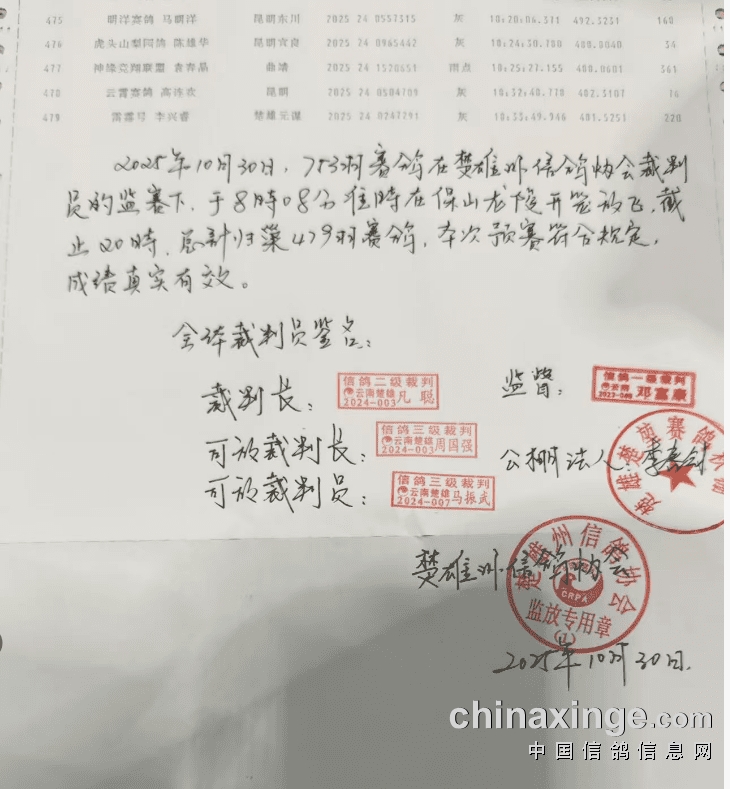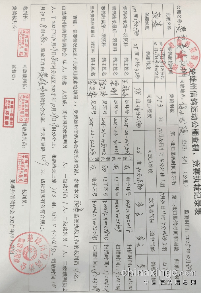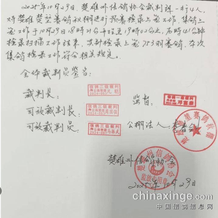 楚堃赛鸽秋棚第二届 300公里预赛执裁人员名单公示