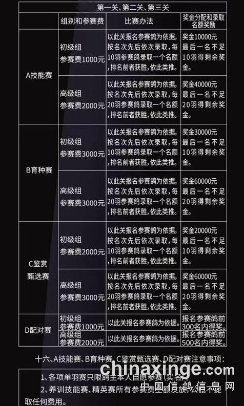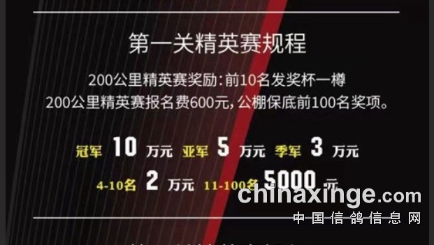 精英赛以及技能赛报名结束时间为集鸽前一天下午17点,集鸽当天不接受任何报名。