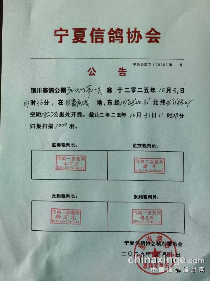 宁夏信鸽协会公告