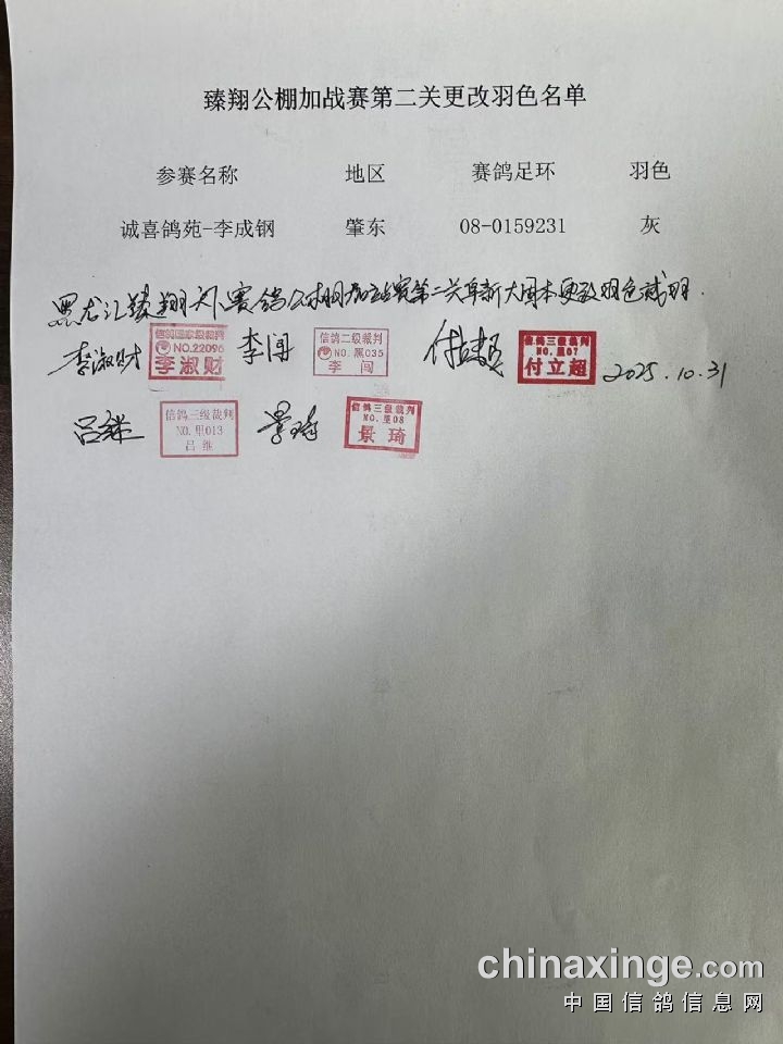 臻翔公棚双关鸽王加站赛第二关前十名验鸽单